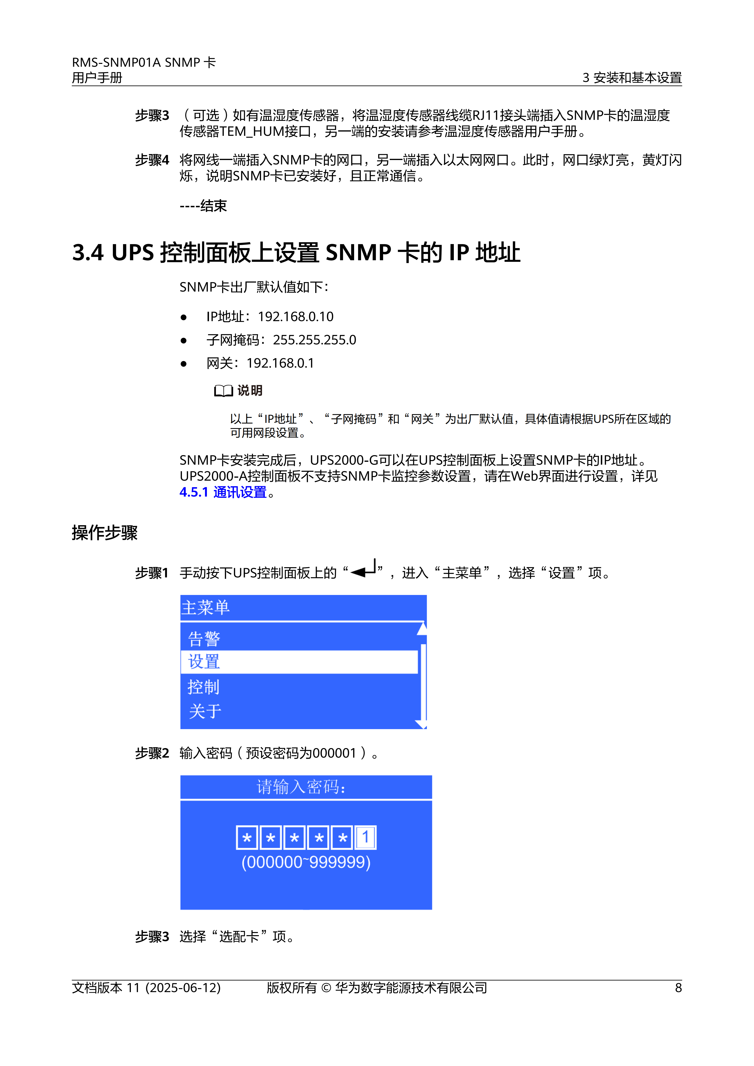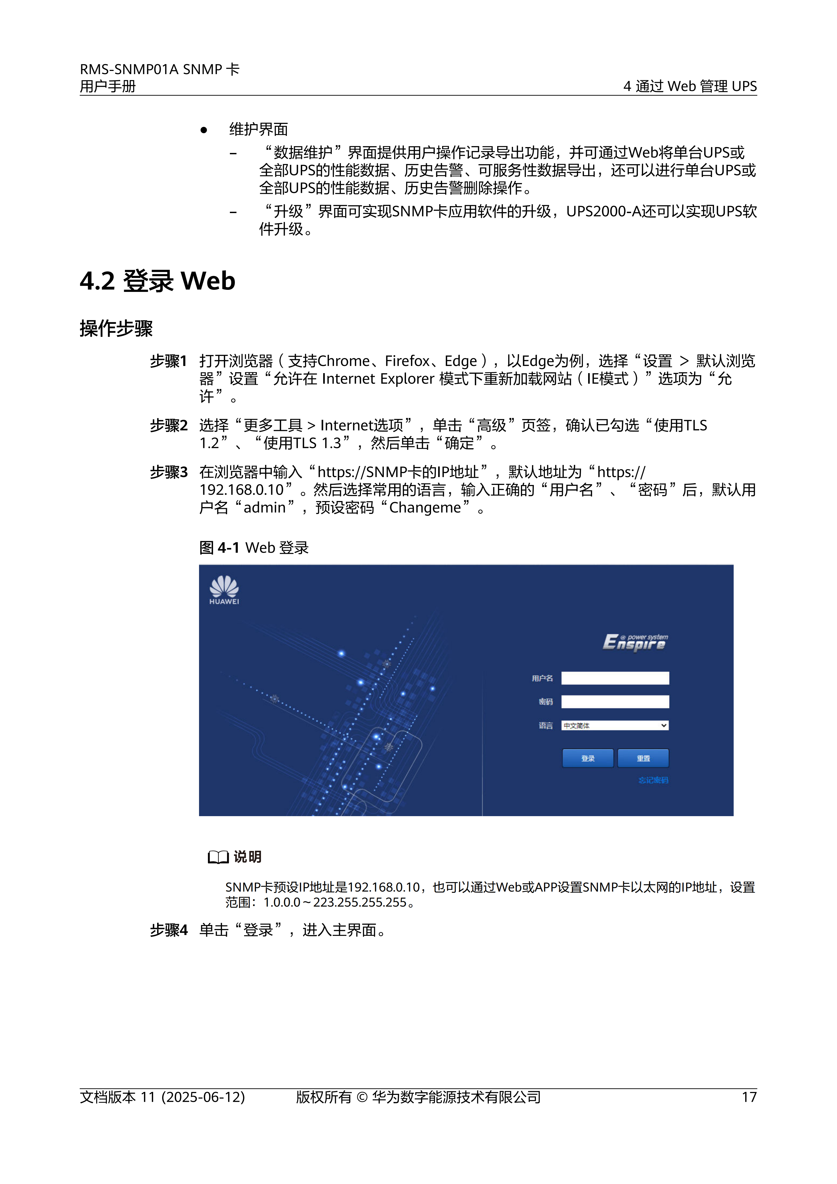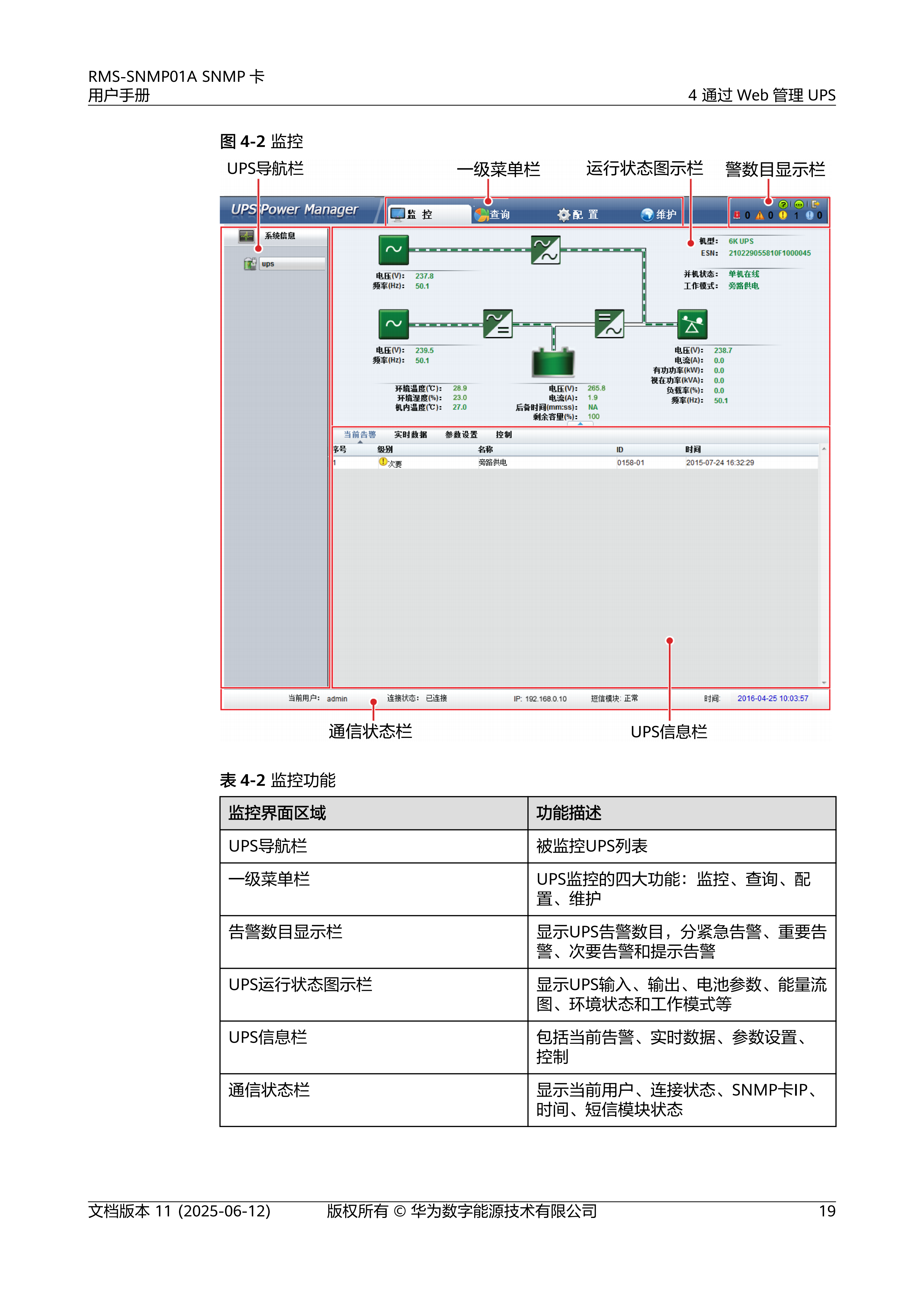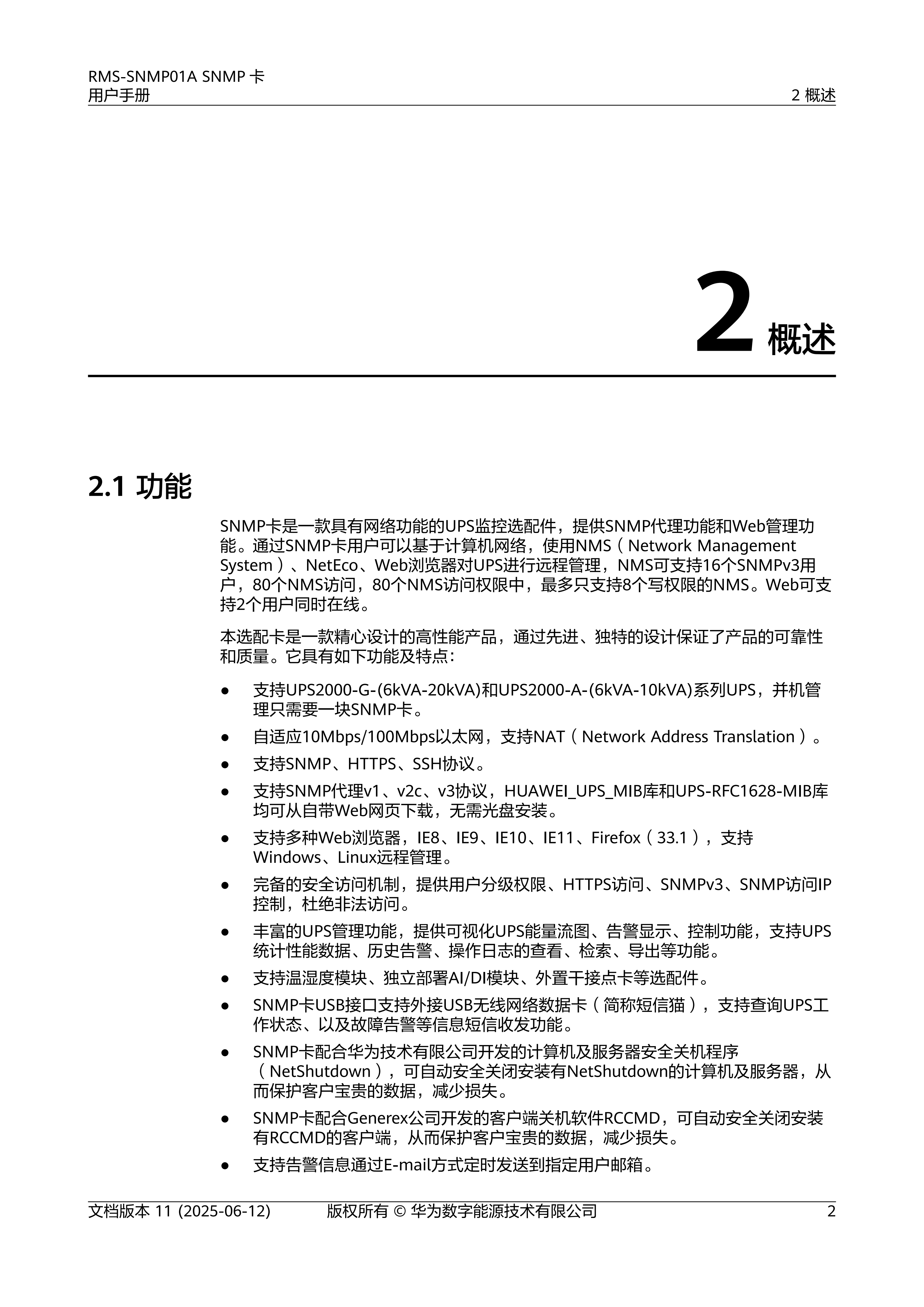 RMS-SNMP01ASNMP卡是一款具有网络功能的UPS监控选配件,提供SNMP代理功能和Web管理功能。通过SNMP卡用户可以基于计算机网络,使用NMS(Network Management System)、NetEco、Web浏览器对UPS进行远程管理,NMS可支持16个SNMPv3用户,80个NMS访问,80个NMS访问权限中,最多只支持8个写权限的NMS。Web可支持2个用户同时在线。
